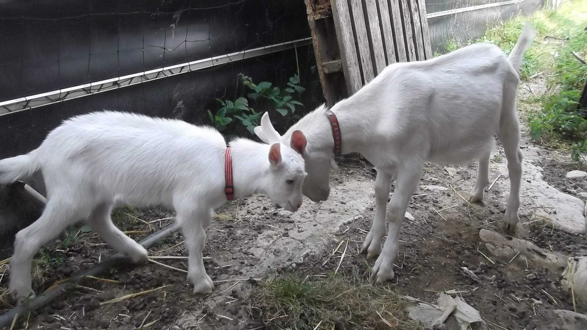 子やぎのたわむれ 子やぎたちはよく頭突きをし合って遊びます どうやら 挨拶みたいなものらしいです 大人になるとオス同士が頭突きをするのを見かけるようになります これはオス同士の権力争いなんだそうです 山本農園では こうした頭突きの際にヤギが怪我を